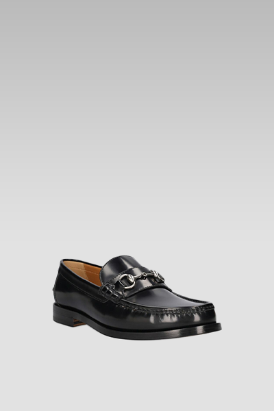 Elevate your wardrobe with the Gucci Horsebit Loafer, crafted from premium polished leather. These loafers boast a signature Horsebit detail in palladium-tone hardware, embodying the essence of Gucci's heritage. The round toe and raised seam detailing offer a classic look, while the branded leather insole ensures comfort. Designed for easy slip-on wear, this loafer is versatile for both casual and formal occasions. Complete with a protective dust bag, it reflects a perfect fusion of luxury and function.