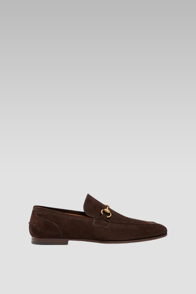 The Gucci Jordan Loafer in Brown Suede shoes are stylish and luxurious. The shoes are crafted with premium quality suede, offering an elegant and comfortable wearing experience. These shoes’ striking brown colour and sleek design make them a versatile and fashionable choice for all special occasions or casual wear.