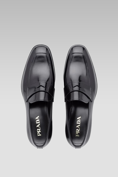 Featuring a shiny brushed leather finish to help achieve a traditional look, these loafers offer a high-end appeal thanks to an enameled triangle branded badge on the front and chunky rubber sole. In addition to their versatile block coloring, these loafers look great paired with formal outfits.