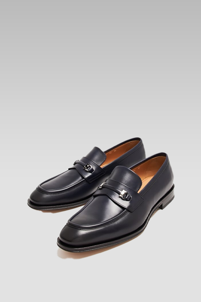 Elevate your footwear collection with the Ferragamo Leather Desmond Loafer in blue. Crafted from premium calf leather, these loafers feature a luxurious leather lining and a sleek almond-toe design for a sophisticated silhouette. The silver-tone hardware adds a touch of modern elegance, enhancing the overall style. Made in Italy, these loafers reflect Ferragamo’s commitment to superior craftsmanship and timeless design. Perfect for adding a pop of color to your wardrobe while maintaining classic refinement.