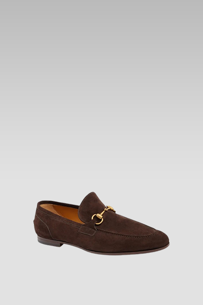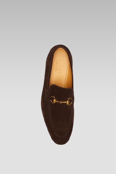 The Gucci Jordan Loafer in Brown Suede shoes are stylish and luxurious. The shoes are crafted with premium quality suede, offering an elegant and comfortable wearing experience. These shoes’ striking brown colour and sleek design make them a versatile and fashionable choice for all special occasions or casual wear.
