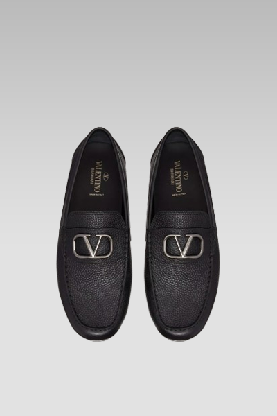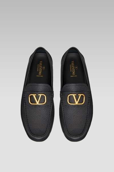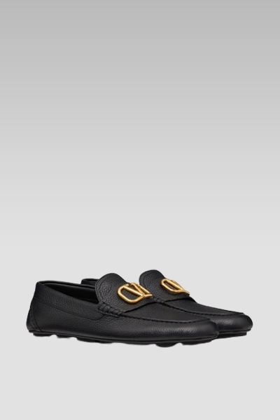 These Italian-made driving shoes by Valentino Garavani are crafted from grained calf leather and adorned with VLogo Signature hardware. The embossed rubber soles also feature the iconic VLogo Signature.